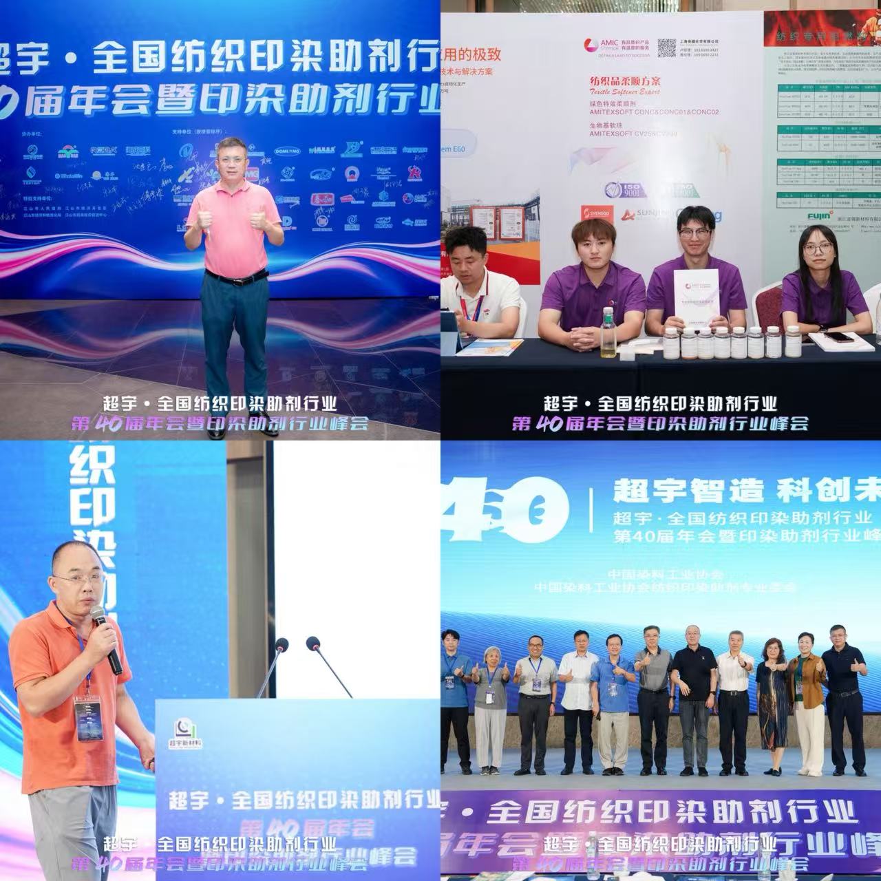 2025 年 8 月 20 日至 22 日,以 “超新智造 宇见未来” 为主题的超宇・全国纺织印染助剂行业第 40 届年会暨印染助剂行业峰会在浙江衢州江山市顺利举行。此次盛会由中国染料工业协会纺织印染助剂专业委员会主办,浙江超宇新材料科技有限公司独家冠名,吸引了众多业内企业、专家学者与从业者踊跃参与,上海尧疆化学有限公司也